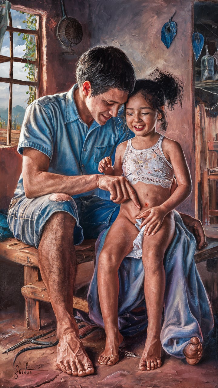 Mais um final de semana se passou e novamente a turminha se reuniu para brincar na piscina. Desta vez, Vívian veio a mim antes de colocar o biquíni. Estava com uma blusinha branca que de tão fina era quase transparente, short rosa e chinelos. As outras crianças estavam se divertindo na piscina, enquanto ela conversava comigo na cozinha. Aí do nada, Vívian com sua carinha de menina doce, me perguntou com aquela voz infantil: «Tio, vamos brincar de cosquinha hoje?» e foi aí que eu decidi como faria para conseguir meu objetivo. Vívian era uma menina inocente que poderia ser persuadida a brincar do jeito que eu queria.