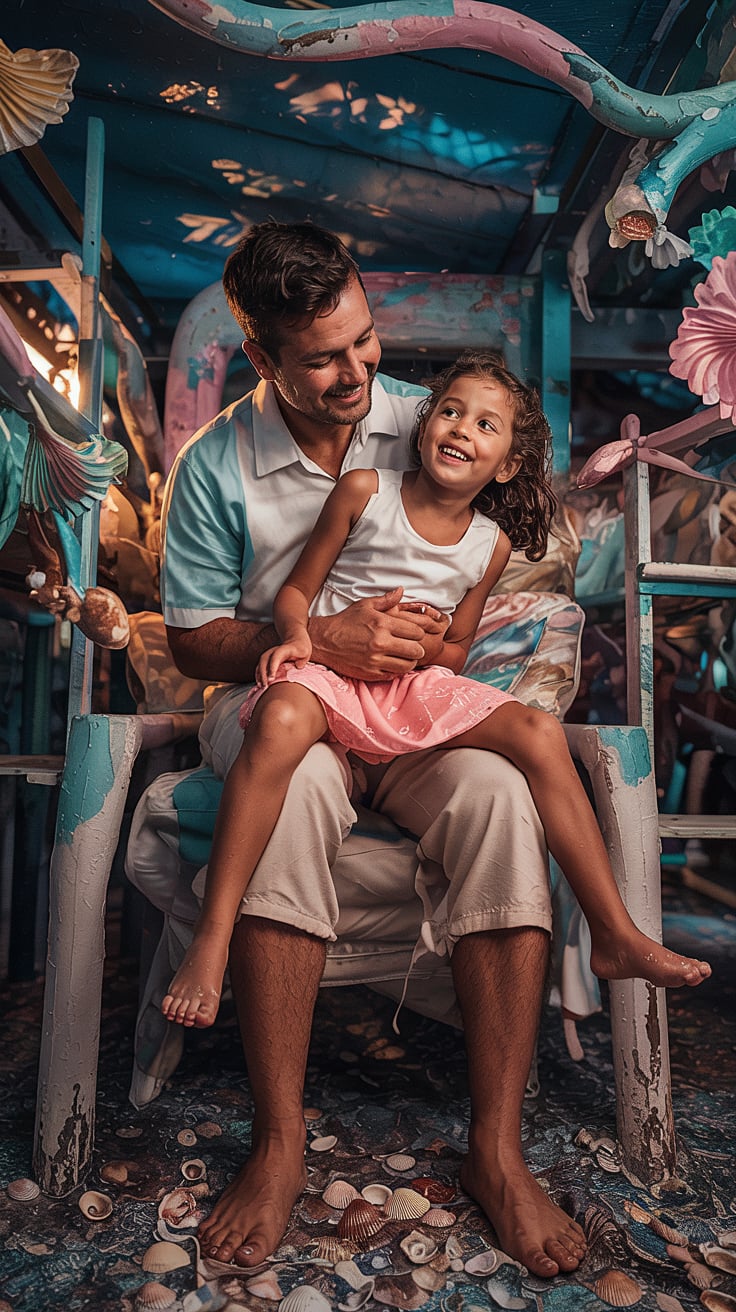 Fui puxando conversa, ganhando intimidade com a menina. Eu disse que meu filho gosta muito de cosquinhas, faço sempre porque ele adora. Ela sorriu e disse que também gosta muito. Perguntei se podia fazer nela, ela disse que sim. Então comecei de leve nos lados da barriga, depois embaixo dos braços, nos pés, fui descobrindo onde funcionava para ela. Vívian é uma criança bem divertida, ri alto e não ficou nem um pouco desconfortável com minhas cócegas. Chegou a deitar no sofá, rolando de tanto rir. Quando parei, deixei que recuperasse o fôlego e falei que entraria na piscina, afinal o calor era grande. Ela também veio e ficamos junto com meu filho e outras 4 crianças nos refrescando, até que chegou a hora de irem embora. Nesse dia Vívian me deu tchauzinho pela primeira vez, o que indicou que ela gostou da minha companhia e já me considerava um amigo – mesmo eu sendo adulto.